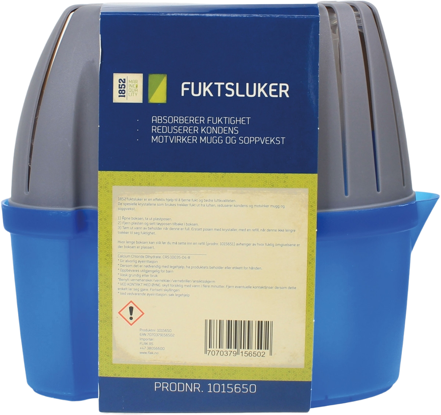 Praktisk fuktslukerboks fra 1852 som effektivt fjerner fukt og reduserer dårlig lukt. Ideell til bruk i båt, bil, campingvogn, garasje eller kjeller. Perfekt under vinteropplag for å unngå kondens, mugg og vond lukt.