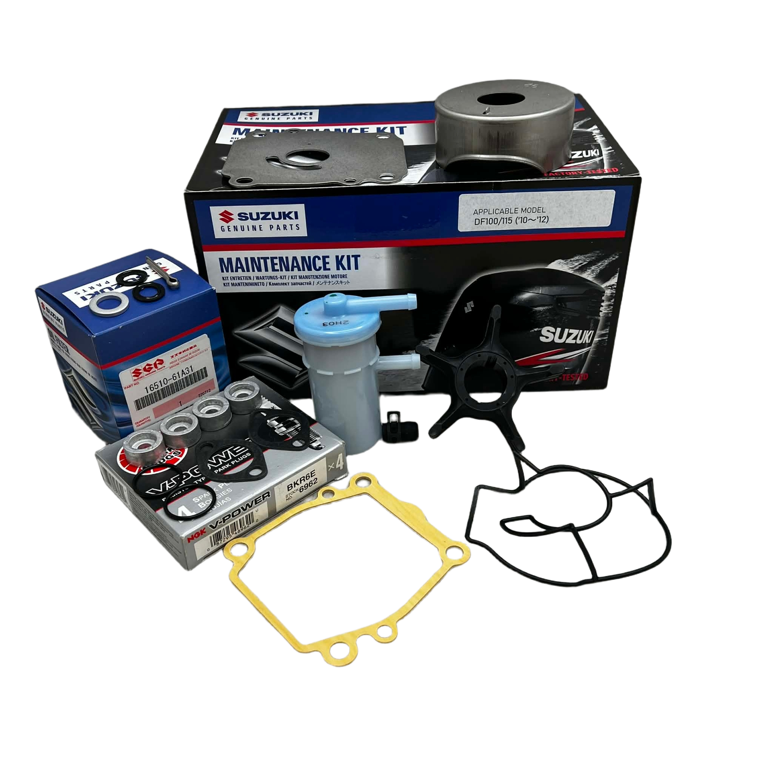 Suzuki service- og vedlikeholdskit for DF100 og DF115 er beregnet for 300-timers service på Suzuki firetakt påhengsmotorer produsert fra 2010 til 2012.